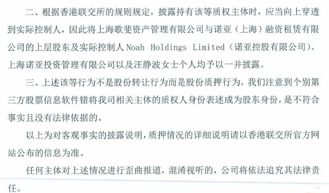 3、为什么炒股软件显示诺亚财富是股东,原来是根据港股的披露要求,会向上穿透到实际控制人,所以歌斐资产的上层股东以及实控人汪静波也一起披露了。