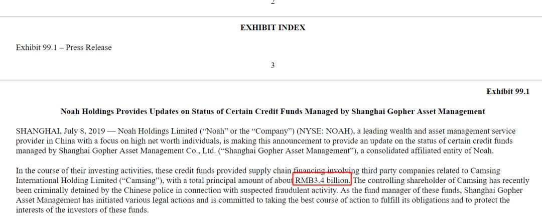 那么歌斐资产借给罗静多少钱做股权质押呢?美股公司诺亚财富也发了公告称,旗下歌斐资产的信贷基金为承兴国际控股(Camsing International Holding Limited)相关第三方公司提供供应链融资,总金额为34亿元人民币。