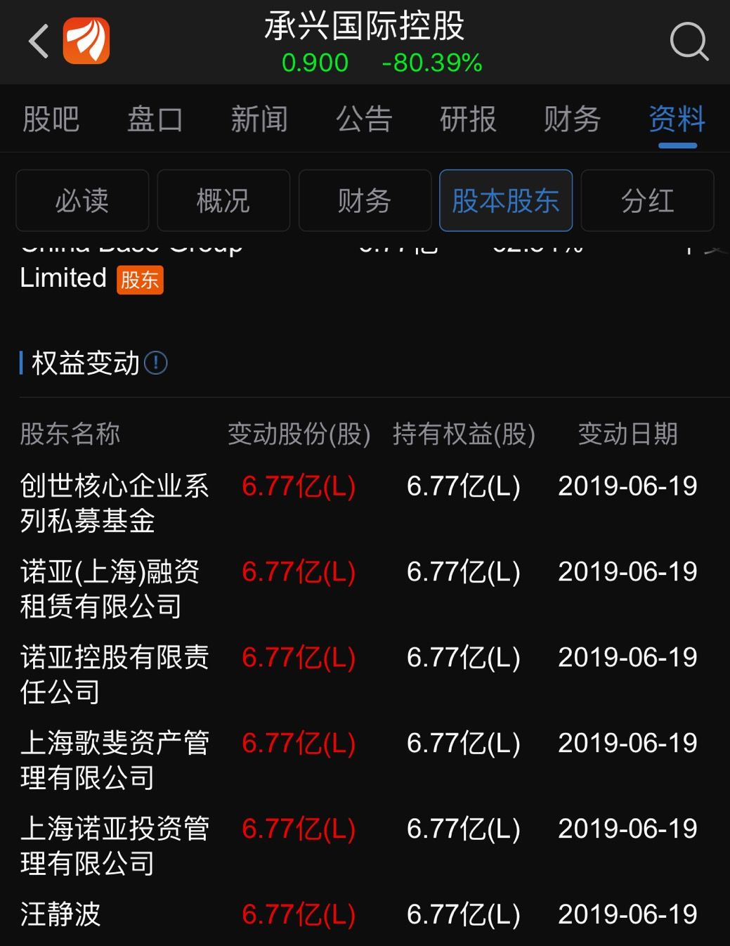 最关键的是,投资者们发现,东财软件上显示,诺亚财富竟然成为了承兴国际控股的股东?还持有6.7亿股!
