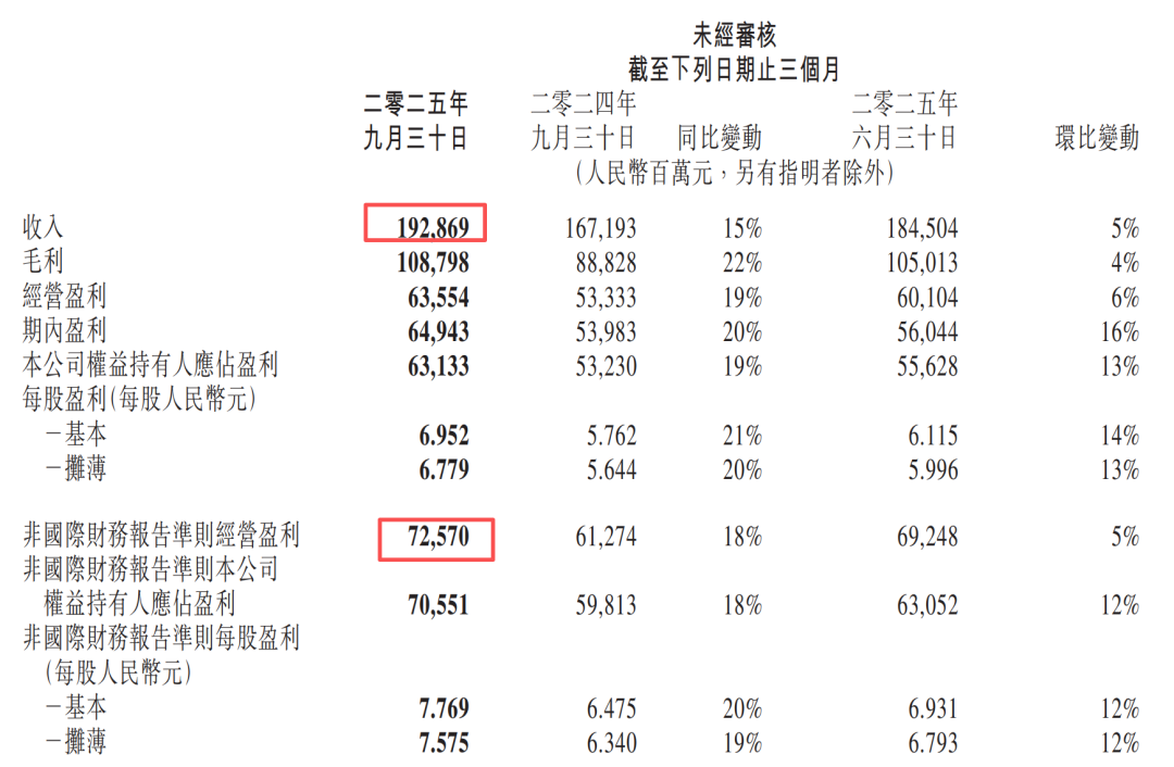 金融科技及企业服务业务第三季度的收入同比增长10%至人民币582亿元。金融科技服务收入同比以高个位数百分比增长,主要受益于商业支付活动及消费贷款服务的收入增加。