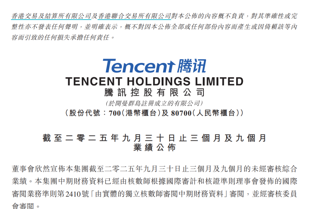 马化腾表示:“2025年第三季度,我们实现了坚实的收入及利润增长,反映游戏、营销服务、金融科技及企业服务等业务的健康趋势。我们对AI的战略投入,不仅为我们在广告精准定向及游戏用户参与度等业务领域带来助益,也带来了编程、游戏及视频制作等领域的效率提升。我们持续升级混元基础模型的团队及技术架构,混元的图像及3D生成模型已处于行业领先水平。随着混元能力不断提升,我们在推动元宝普及的投入以及在微信内发展AI智能体能力所做的努力,将带来更积极的进展。”